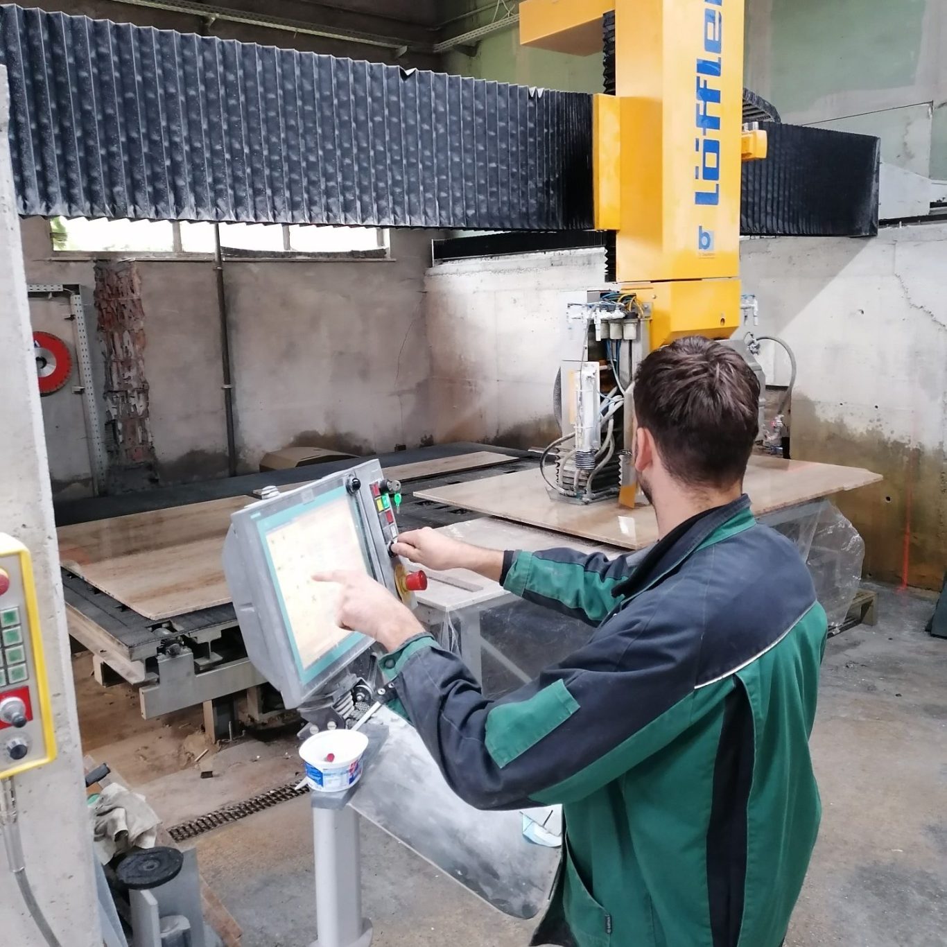 - Bedienung von Maschinen wie Säge, Fräse mit CNC-Technik zur Steinverarbeitung